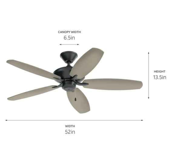 Kichler 52″ Renew Ceiling Fan Satin Black (No Light)
