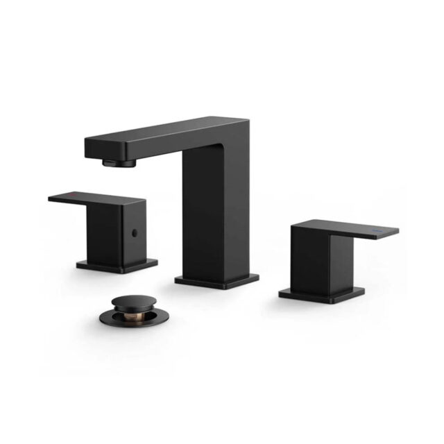 • Widespread Square Handle Bathroom Faucet Matte Black