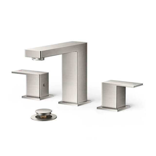 • Widespread Square Handle Bathroom Faucet Brushed Nickel