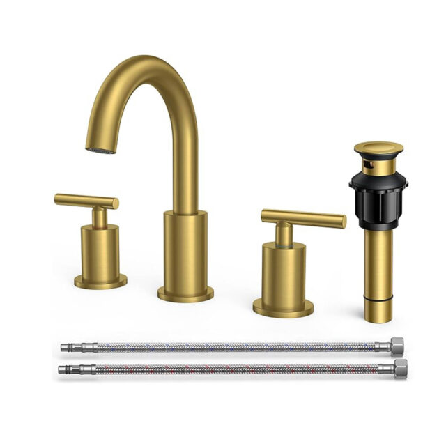 • Widespread High Arch Bathroom Faucet Gold